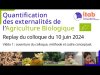 0:15:35:08 : Externalités de l'AB, méthode et cadre conceptuel par Natacha Sautereau, coordinatrice du pôle Durabilité et Transition (ITAB) 0:35:46:14: séquence sol par Êva Lacarce, chargée de projet Sol (ITAB)